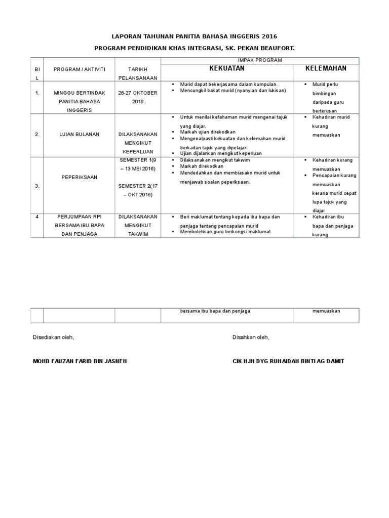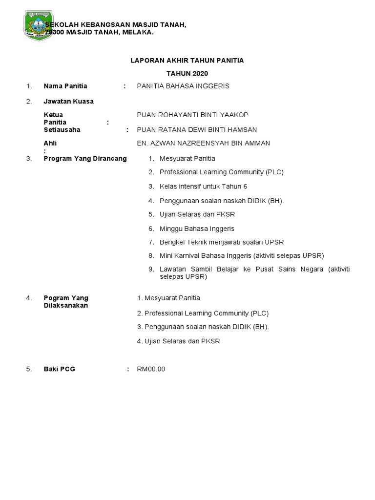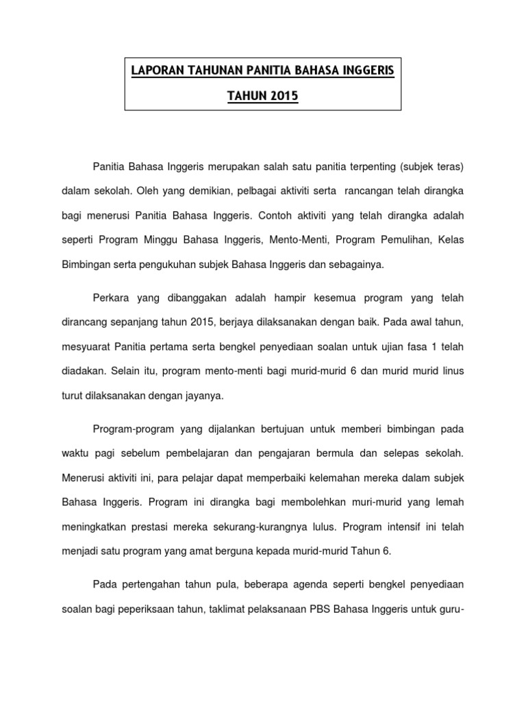 Laporan Tahunan Panitia Bahasa Inggeris Pdf